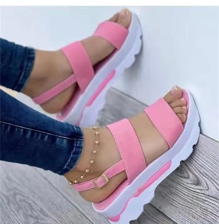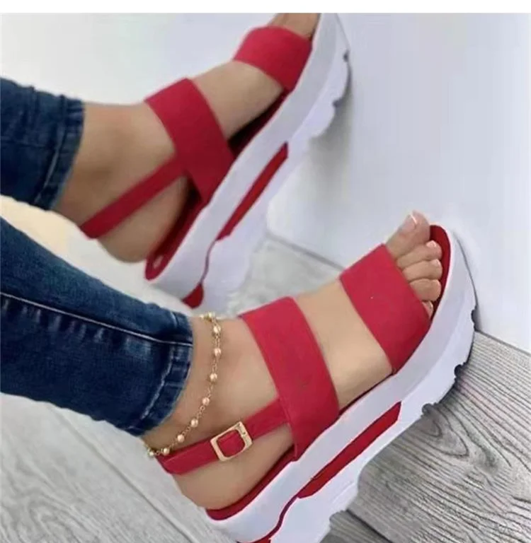 النساء الصنادل اللمحة تو صنادل أرضية مع الكعوب أحذية الصيف النساء خفيفة الوزن أسافين أحذية منصة الكعوب Chaussure فام